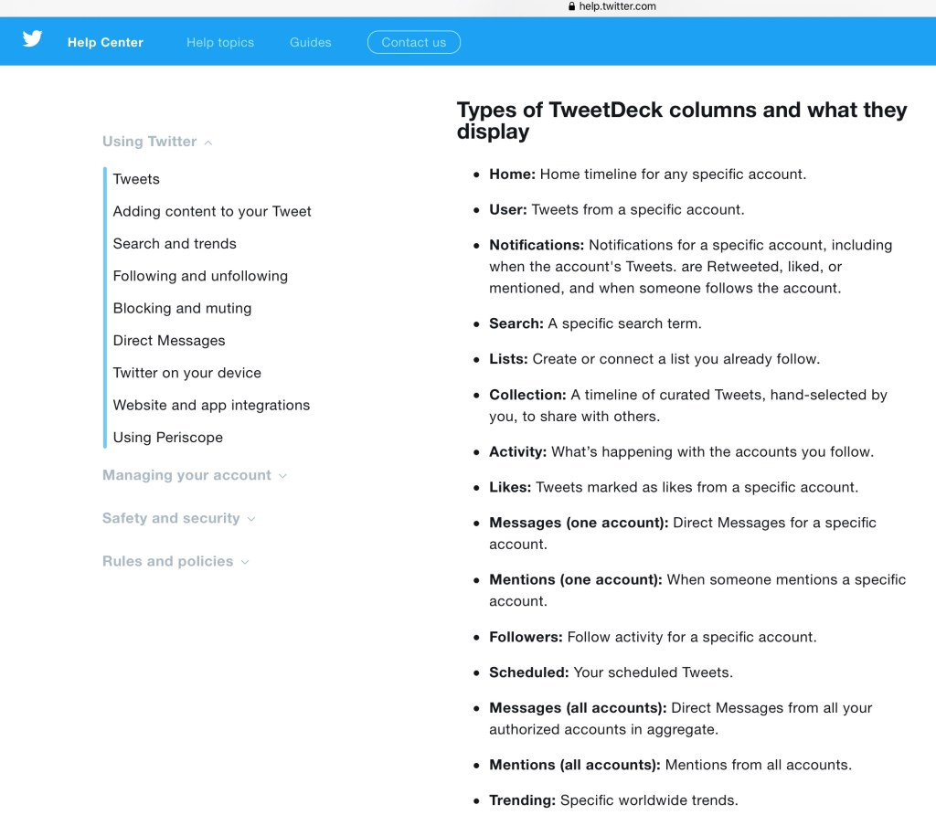 3) To see tweets from a particular person, or where a hashtag has been mentioned, you’ll need to set up a column: