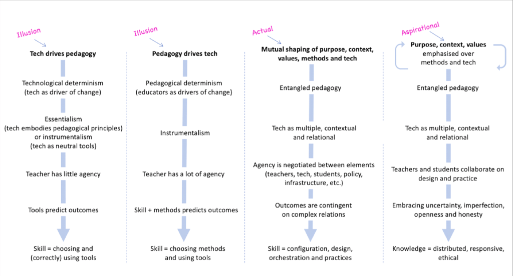 Fawns, T. (2022). An Entangled Pedagogy: Looking Beyond the Pedagogy—Technology Dichotomy. Postdigital Science and Education. https://doi.org/10.1007/s42438-022-00302-7.