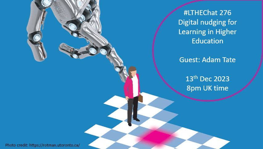 I nudge you to come and join me for amy #LTHEchat on digital nudging for the purpose of learning in the Higher Education sector.